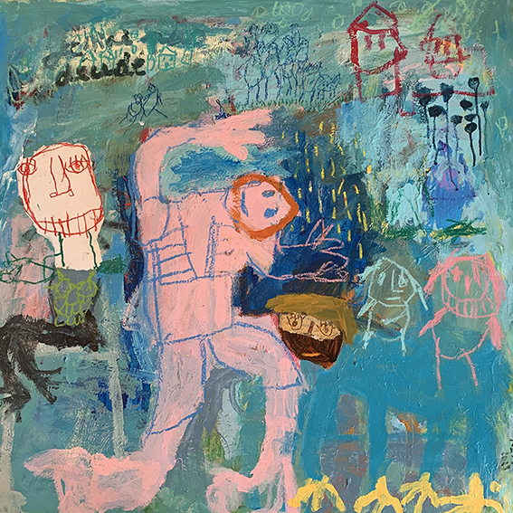 Né en 1969 à Paris, Ronnie NEMORIN produit un art ou le geste est spontané, brut, instinctif. Dans son travail, il aime mixer acrylique, crayon gras, collages de papier déchiré sur toile. L’univers artistique de Ronnie est fait de liberté, d’audace dans ses personnages qui se fondent dans un tourbillon de couleurs flamboyantes. Nous retiendrons du travail de Ronnie, un monde coloré et lumineux dont » l’art célèbre la vie et l’inattendue. »