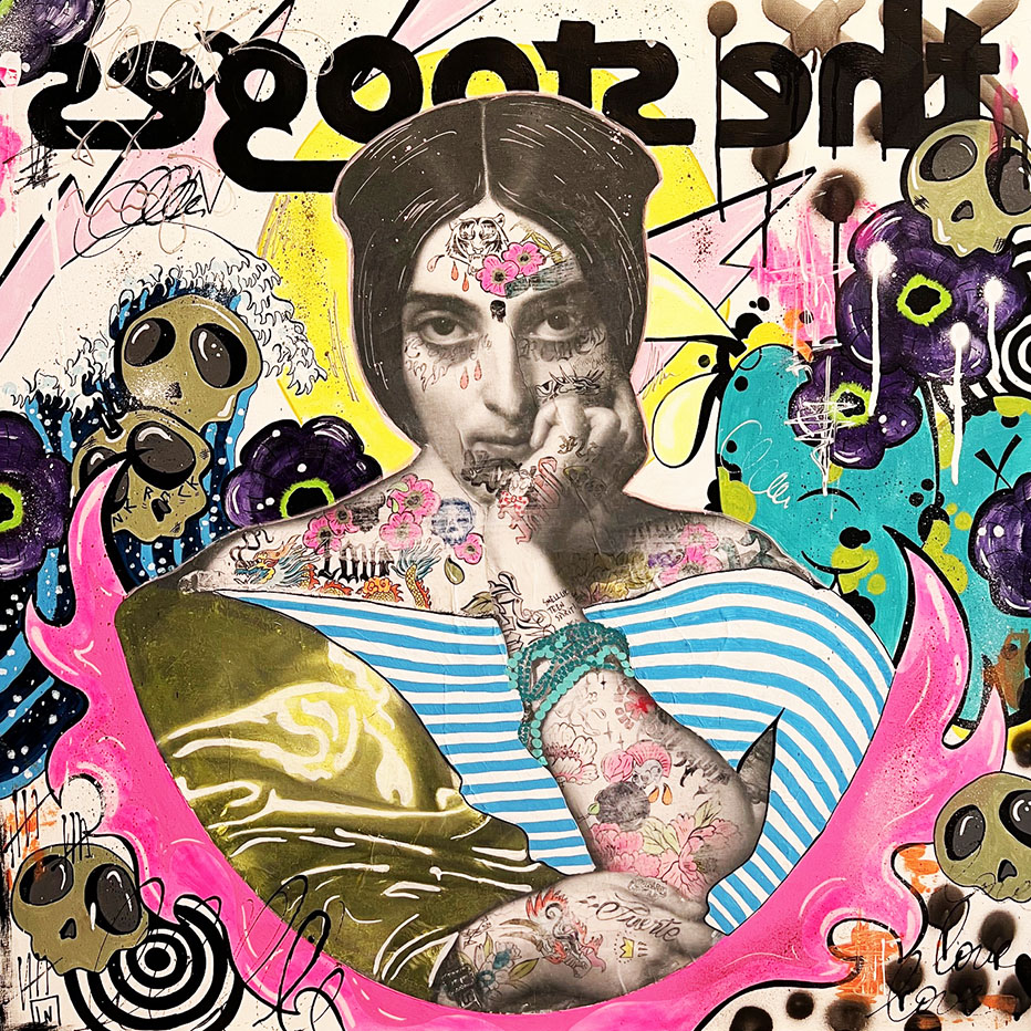 «I wanna be your dog» par Hélène Le Pape– Technique mixte sur toile– 80×80 cm – 940 € – Ref # 5544